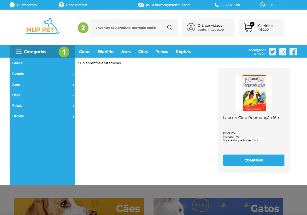 - Busca através das categorias e subcategorias.